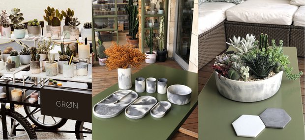 Betonun en estetik hali sloganı ile ortaya çıkan GRØN Atölye’de el yapımı ve özel üretim beton objeler ve özel tür kaktüsler yer alıyor.